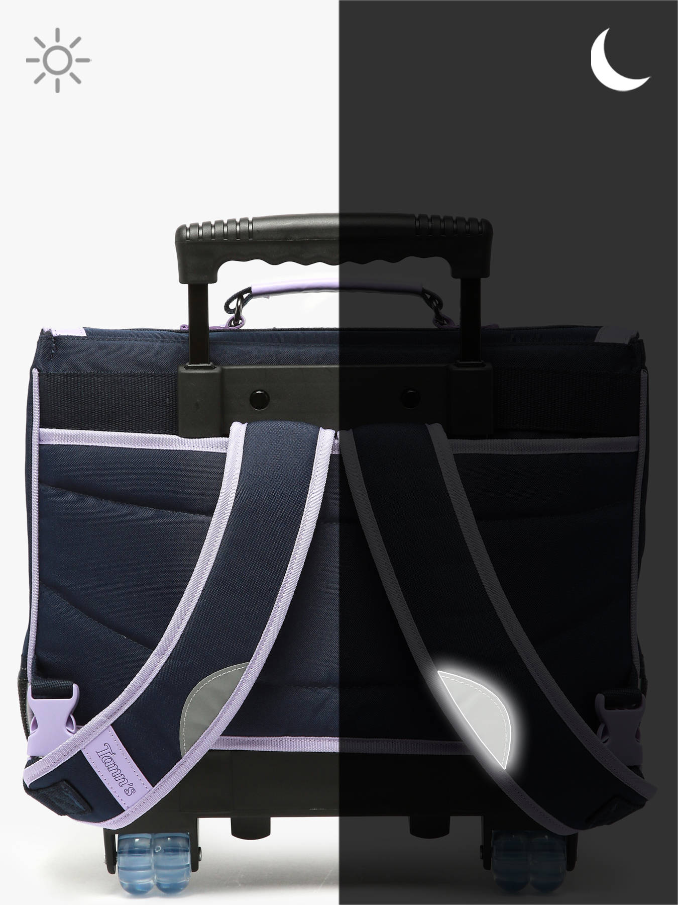 38 cm - 14 litres - 2.09 kg ~ Ce cartable à roulettes TANN'S en polyester recyclé est idéal pour les filles de 6 à 8 ans. Conçu pour le confort et la praticité, il dispose de deux grands compartiments pouvant accueillir un dossier A4, un cahier jusqu’au format 24x32 cm et un classeur A4. Les deux poches avant permettent de garder les petits objets à portée de main. Grâce à ses bretelles réglables et sa poignée, il se porte aussi bien à la main qu’au dos. Son système de roulettes soulage le poids sur les épaules, parfait pour les trajets quotidiens. Le rabat à fermoir sécurise le contenu tout en ajoutant une touche élégante. Un modèle fonctionnel, éco-conçu et adapté au rythme scolaire.